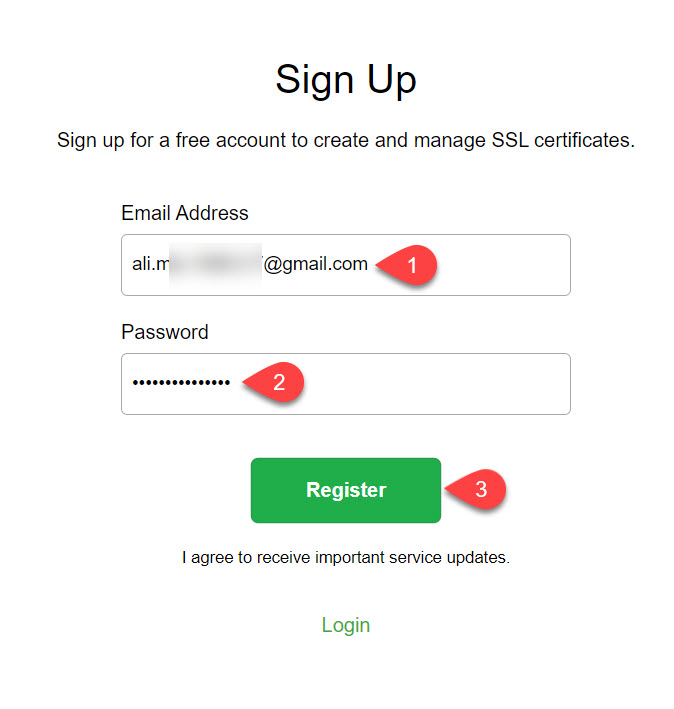 سيطلب منك الموقع إنشاء حساب فيه، ولفعل ذلك عليك إدخال بريدك الإلكتروني وكلمة مرور جديدة للحساب، ثم النقر على زر (Register).