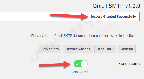 - إذا ظهرت لك Access Granted Succesfully مع تغيّر حالة الـ SMTP إلى Connected، فهذا يعني إعدادك للتّطبيق إعدادا صحيحا.