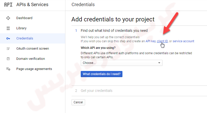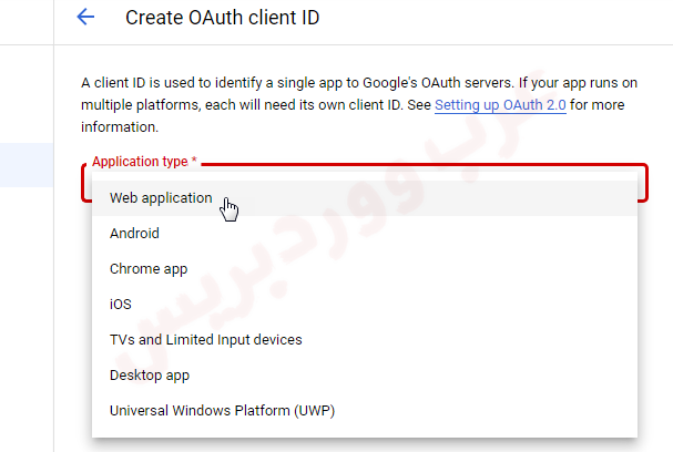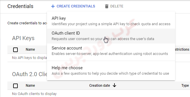 ومن قائمتها المنسدلة اختر OAuth Client ID