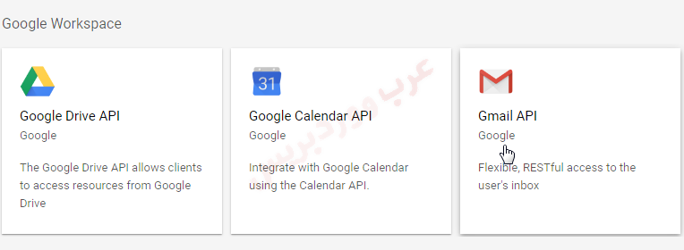 سينقلك هذا إلى صفحة الـ APIs المتوفّرة من جوجل. انتقل إلى مجموعة Google Workspace، واختر Gmail API.