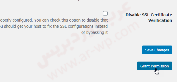 بعد ملء الاختيارات، اضغط Save Changes، ثمّ اضغط Grant Permission.
