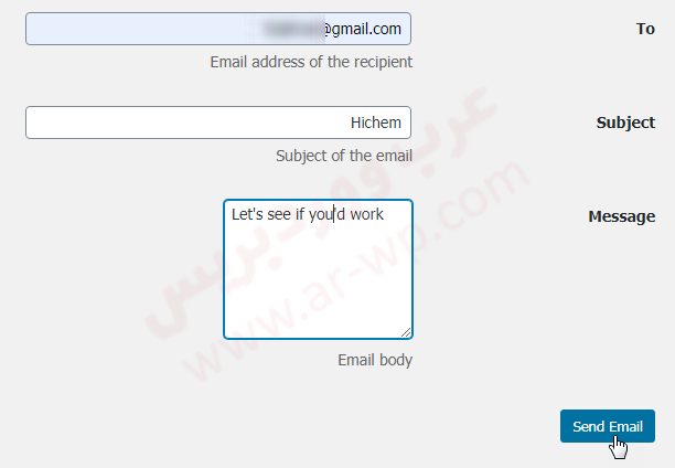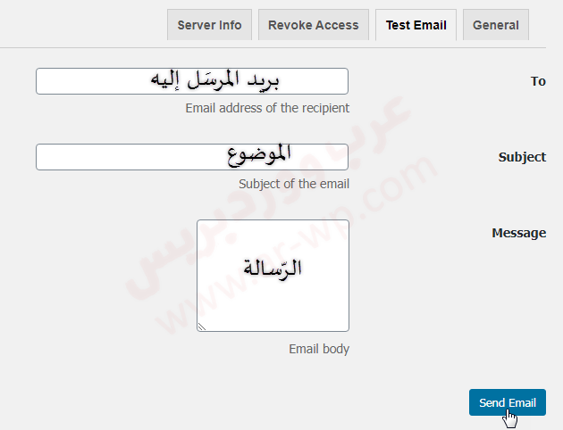 4- تجريب تطبيق WP Gmail SMTP على الووردبريس
