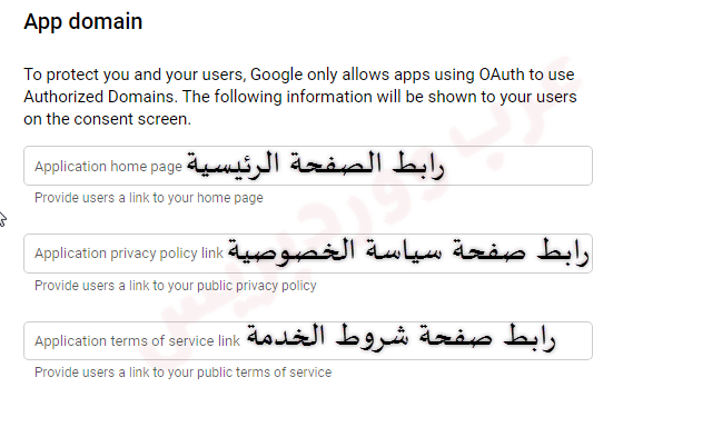 - OAuth Email Address هو الإيميل ذاته الّذي استخدمته في مطوّري جوجل.
