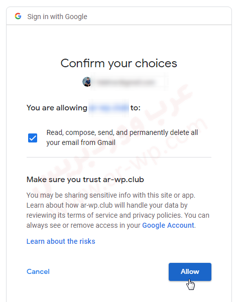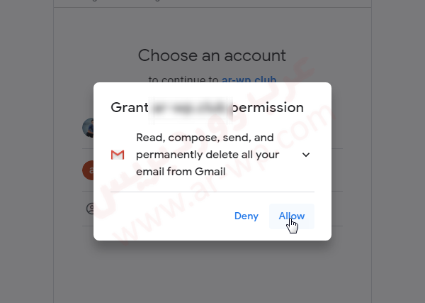 - امنح التّرخيص بعدها للتّطبيق بالولوج إلى بريدك الإلكتروني بضغط Allow