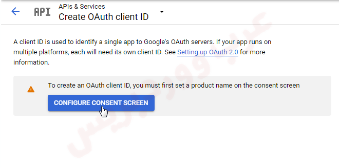 هكذا نكون وصلنا إلى بروتوكول OAuth، وعلينا إعداد صفحة الموافقة (Consent screen)، فاضغط الاختيار الموافق.