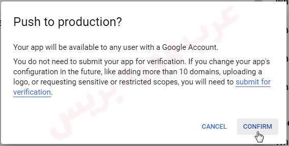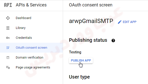 - عد من اليسار إلى صفحة OAuth Consent Screen، واضغط Publish APP.