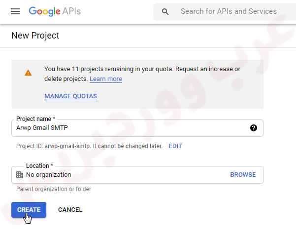 1- إنشاء تطبيق Gmail SMTP على Google Developers