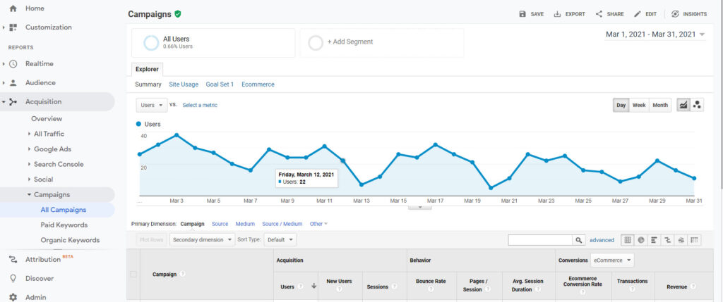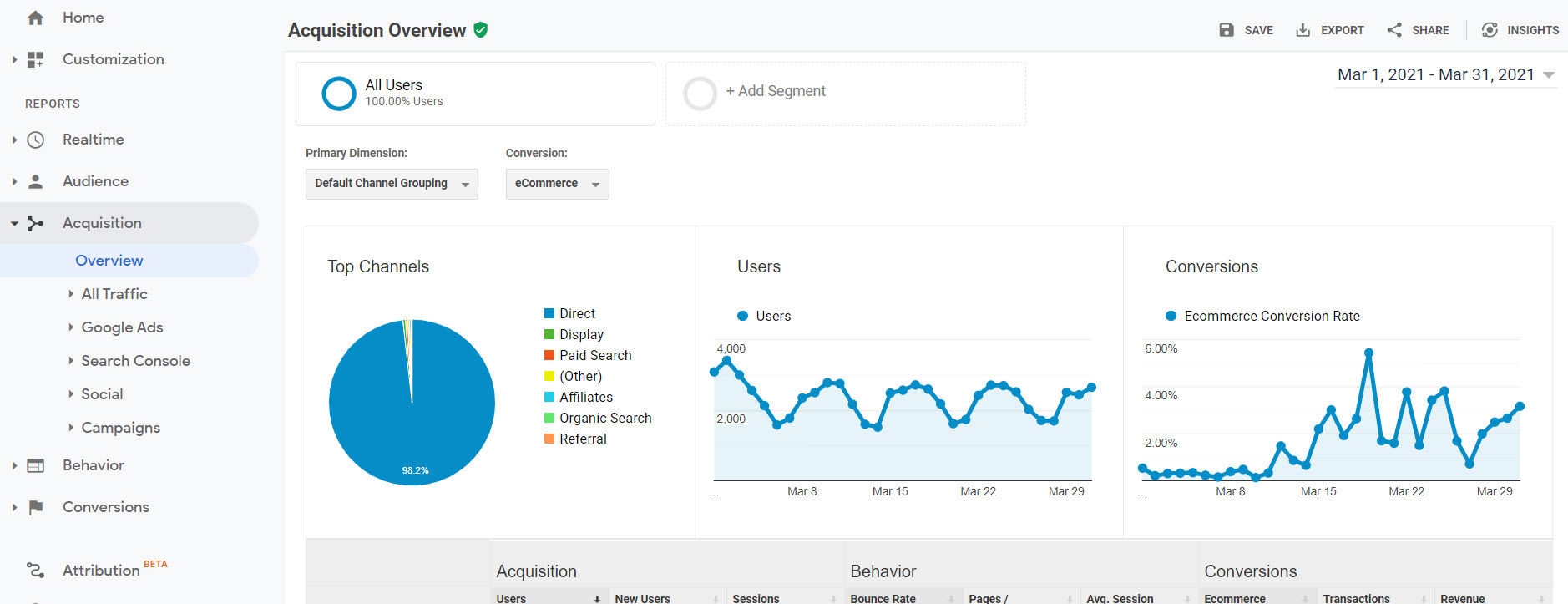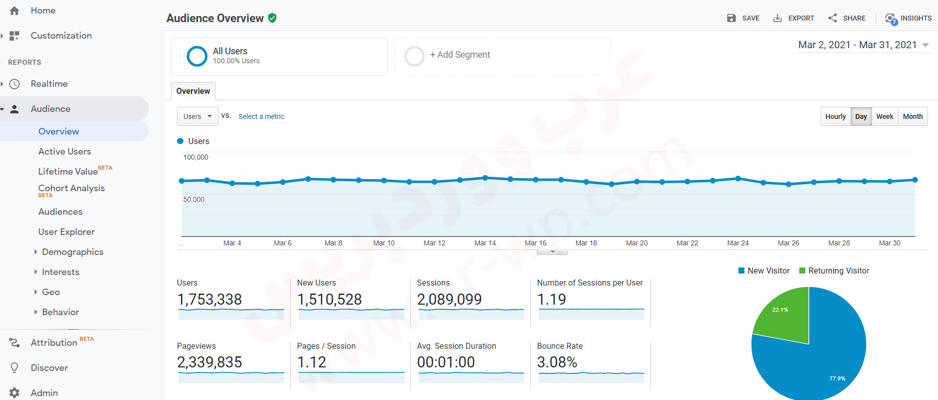 • المستخدمين Users، والمستخدمين الجدد: هم عدد زوار الموقع.