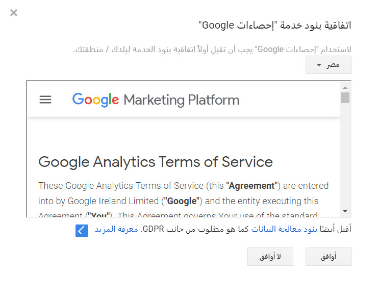 • ونوافق على شروط استخدام جوجل أناليتكس.
