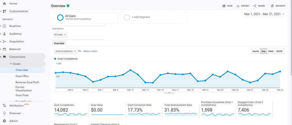 لكل موقع أهدافه الخاصة سواء كانت مبيعات، تسجيل في موقع وجمع الإيميلات، أو زيارة وتصفح المدونة... بعد تحديد أهدافك، جوجل أناليتكس يساعدك في تتبع الوصول conversion لأهدافك.