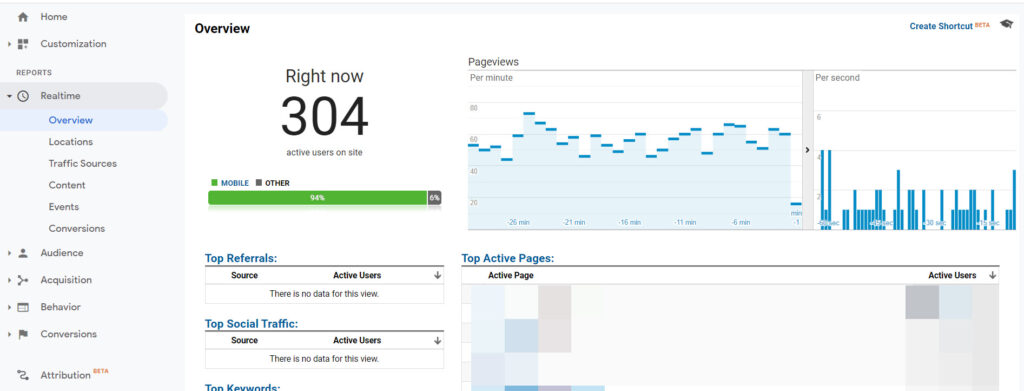 يمكنك معرفة عدد زوار موقعك في الوقت الحالي، والصفحات التي يشاهدونها ومن أي مكان تم تحويلهم على موقعك.... وغيرها من البيانات. لكنها بيانات لحظية آنية تتغير كل ثانية، لذلك تحتاج إلى بيانات لفترة زمنية أطول للقيام بالتحليل الصحيح.