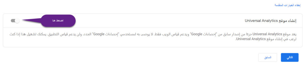 الخيارات المتقدمة لتفعيل Universal Analytics