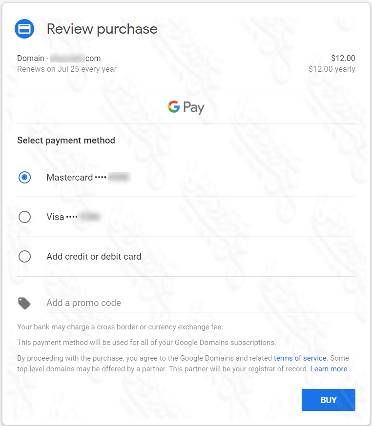 خيارات سلة الشراء في Google Domains