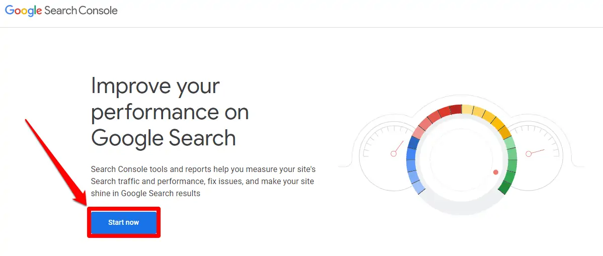 أولاً، تحتاج إلى زيارة موقع Google Search Console والنقر فوق زر ابدأ الآن (Start Now).
