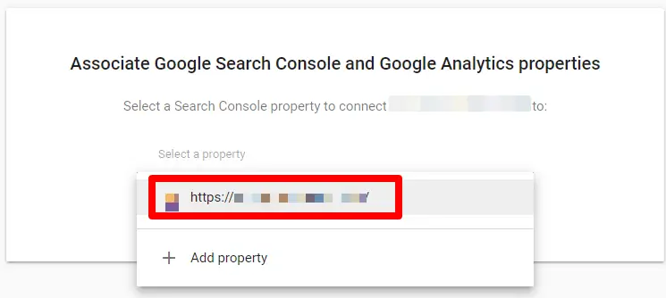 سينقلك Analytics الآن إلى موقع Google Search Console الذي يعرض لك قائمة بجميع مواقع الويب التي أضفتها إلى وحدة تحكم البحث. حدد موقع الويب الذي تريد ربطه بموقع Google Analytics هذا.