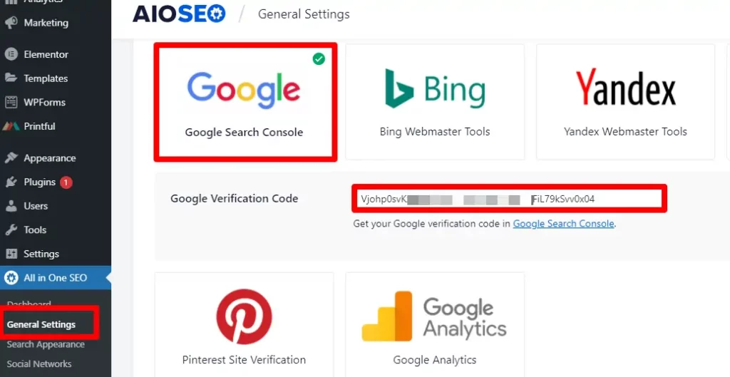 ولتفعيل الموقع يجب نسخ هذا الكود إلى الموقع في المكان المخصص، وكوني أستخدم إضافة All in One SEO فسوف استخدمها في التفعيل، وأنت يمكنك استخدام نفس الأداة أو أي أداة سيو أخرى.