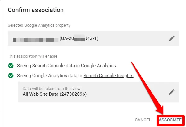 انقر على ربط جوجل اناليتكس مع جوجل كونسول (Associate)
