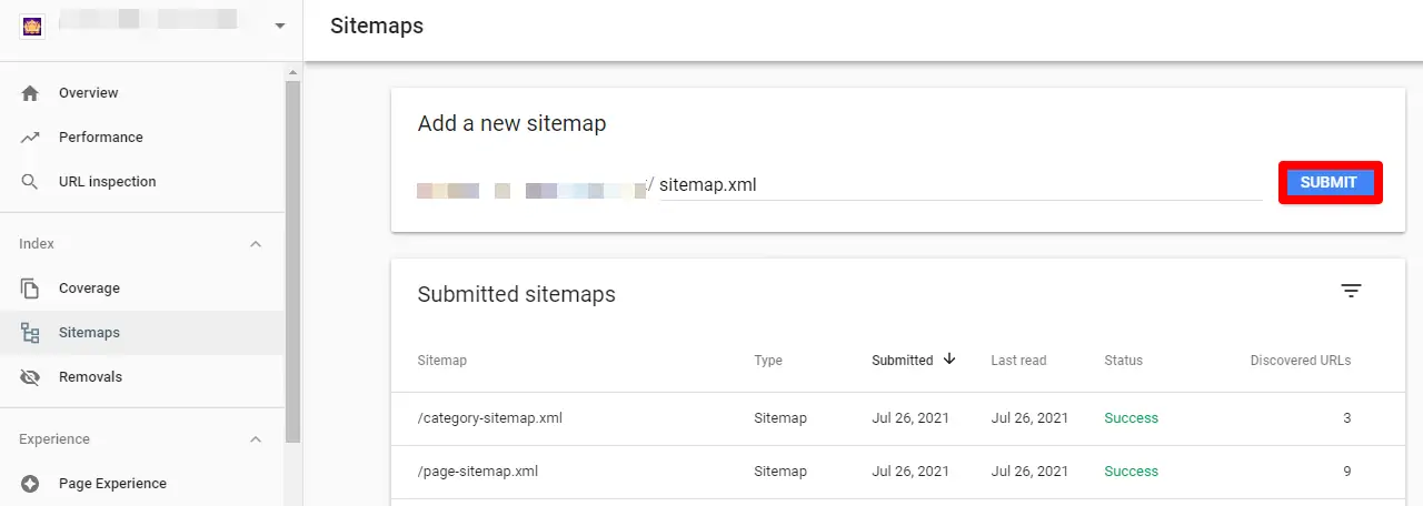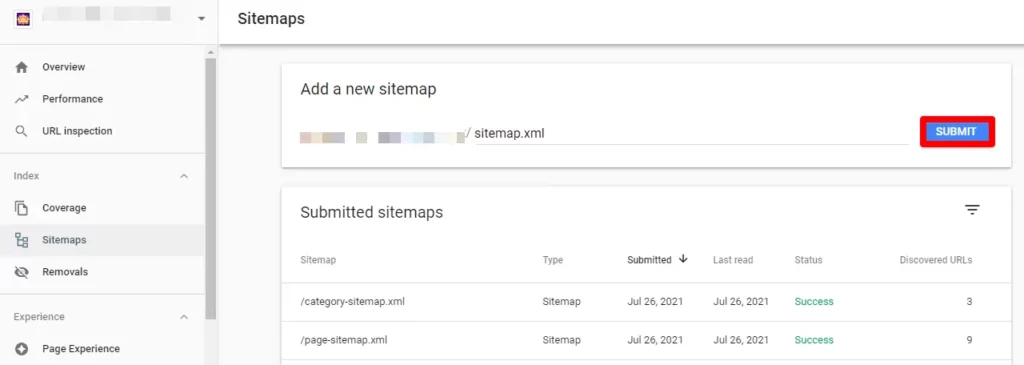 1. إضافة خريطة موقع XML إلى Google Search Console:
