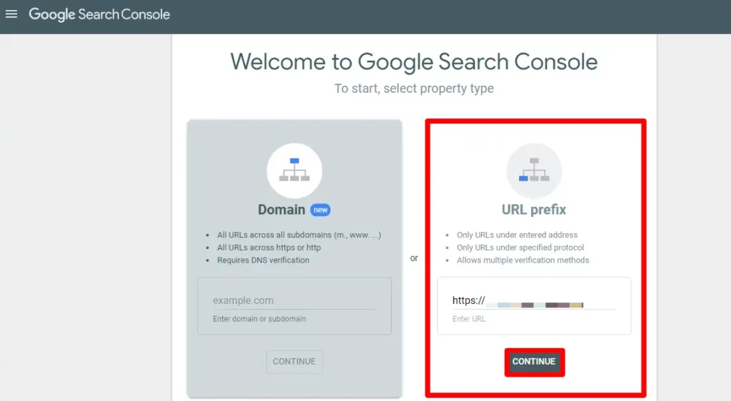 بعد إدخال عنوان موقع الويب الصحيح، انقر فوق الزر متابعة (Continue) للانتقال إلى الخطوة التالية.