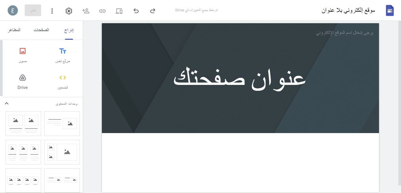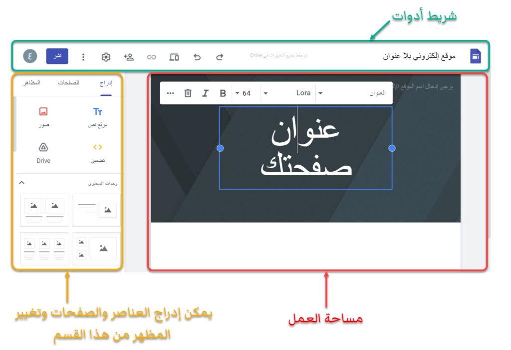 يتم إنشاء موقع ويب مجاني باستخدام جوجل سايت من صفحة أو أداة تحرير الموقع التي تتضمن 3 أقسام رئيسية: