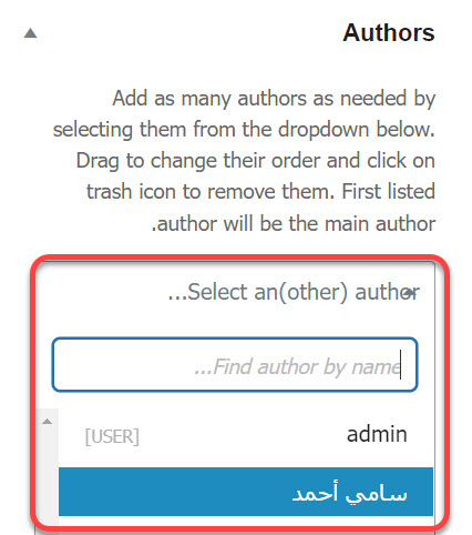 وفي حال كنت تريد إدراج تدوينات ضيف أخرى باسم الضيف نفسه، فليس عليك أن تعيد إنشاء حساب ضيف جديد باسم ذلك الضيف، إنما يمكنك أن تختار الاسم من قائمة المؤلفين الموجودة في قسم (Authors) في محرر المكونات.