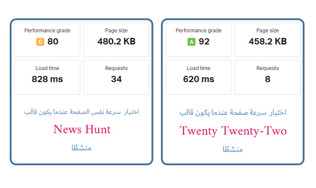 ملحوظة: حرصنا على عدم تنصيب إضافات ووردبريس تساعد على تحسين أداء الموقع لتحييد أي تأثير تحسين يمكن أن تتسب به مثل هذه الإضافات.