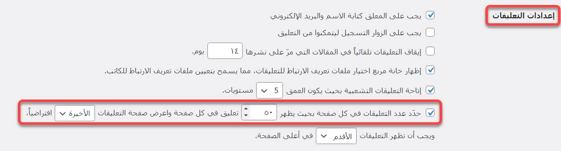 من الجيد أن تحصل على عدد كبير من التعليقات على تدويناتك، فهذا مؤشر على ارتفاع جودتها، لكن الخبر السيء أن عدد التعليقات الكبير يمكن أن يتسب في زيادة وقت تحميل الصفحة، ولهذا السبب لا بد من تقسيم التعليقات إلى صفحات، بحيث لا يتم تحميل عدد كبير منها إلا إذا طلب المستخدم ذلك.