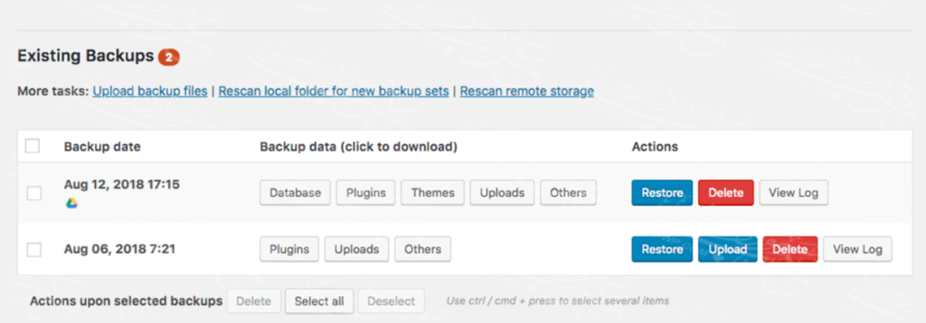 وهناك أيضاً إضافة Updraft Plus وهي تعد أفضل إضافة للنسخ الاحتياطي في الووردبريس، وتسمح لك بإعداد جداول النسخ الاحتياطي التلقائي، كما يمكنك تخزين النسخ الاحتياطية الخاصة بك بأمان على خدمات التخزين الإلكترونية مثل Google Drive وAmazon S3 وDropbox وغيرها.