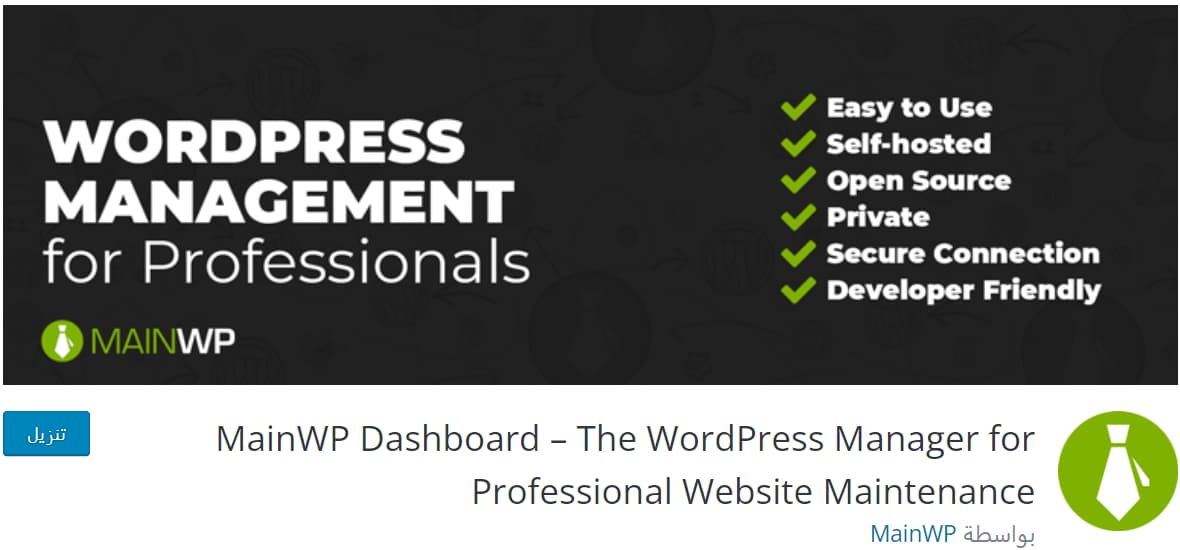 تسمح لك إضافة Main WP Dashboard بإدارة أكثر من موقع ووردبريس من خلال لوحة تحكم واحدة، وذلك حتى وإن كانت المواقع مستضافة على خوادم أو استضافات مختلفة، ومن خلال الإضافة يمكنك أن تتحكم في محتوى التدوينات والصفحات وكذلك إنشاء نسخ احتياطية. تتيح لك الإضافة أيضًا إضافات مصغرة جانبية، وهي تأتي مجانًا لكن مع اشتراك مدفوع.