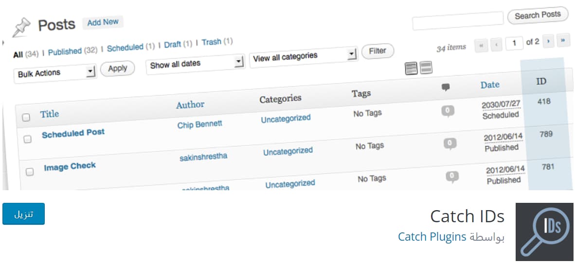 تقوم هذه الإضافة بإنشاء عمود جديد ضمن صفحة إدارة المقالات أو الصفحات، وهذا العمود يعرض لك المعرف الخاص بالصفحة أو المقالة ID، وذلك حيث إن مديري المواقع قد يحتاجون لمعرفة الـID الخاص بأي عنصر لتنفيذ إجراءات معينة.