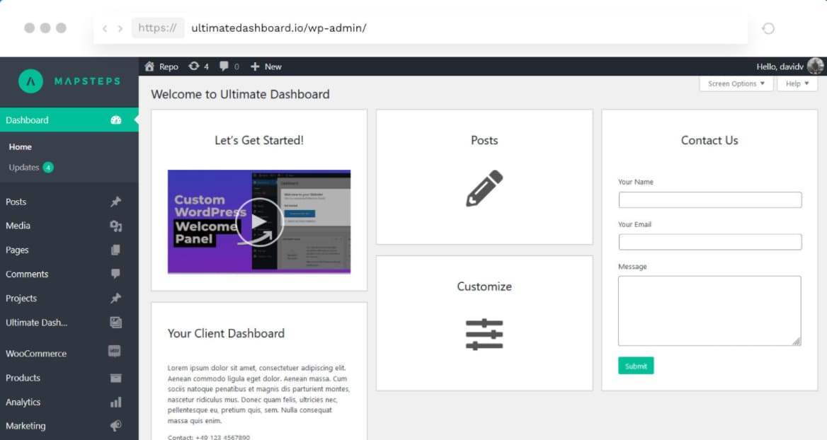 تخدم هذه الإضافة الأشخاص الذين ينشئون المواقع ويحضرونها لمستخدمين آخرين، وهي تسمح لك بتعديل لوحة التحكم بشكل كامل بناءً على احتياجات العميل نفسه، وذلك إلى جانب إمكانية تغيير شكل صفحة تسجيل الدخول وصولًا إلى إمكانية تحرير القوائم.