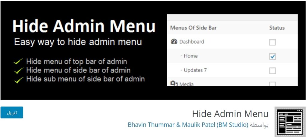 إلى جانب ذلك فإن الإضافة تتيح لك أيضًا التحكم في العناصر الخاصة بالقائمة الجانبية للوحة التحكم، مع عدد من الخيارات الأخرى المفيدة.