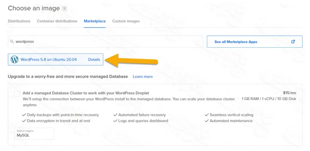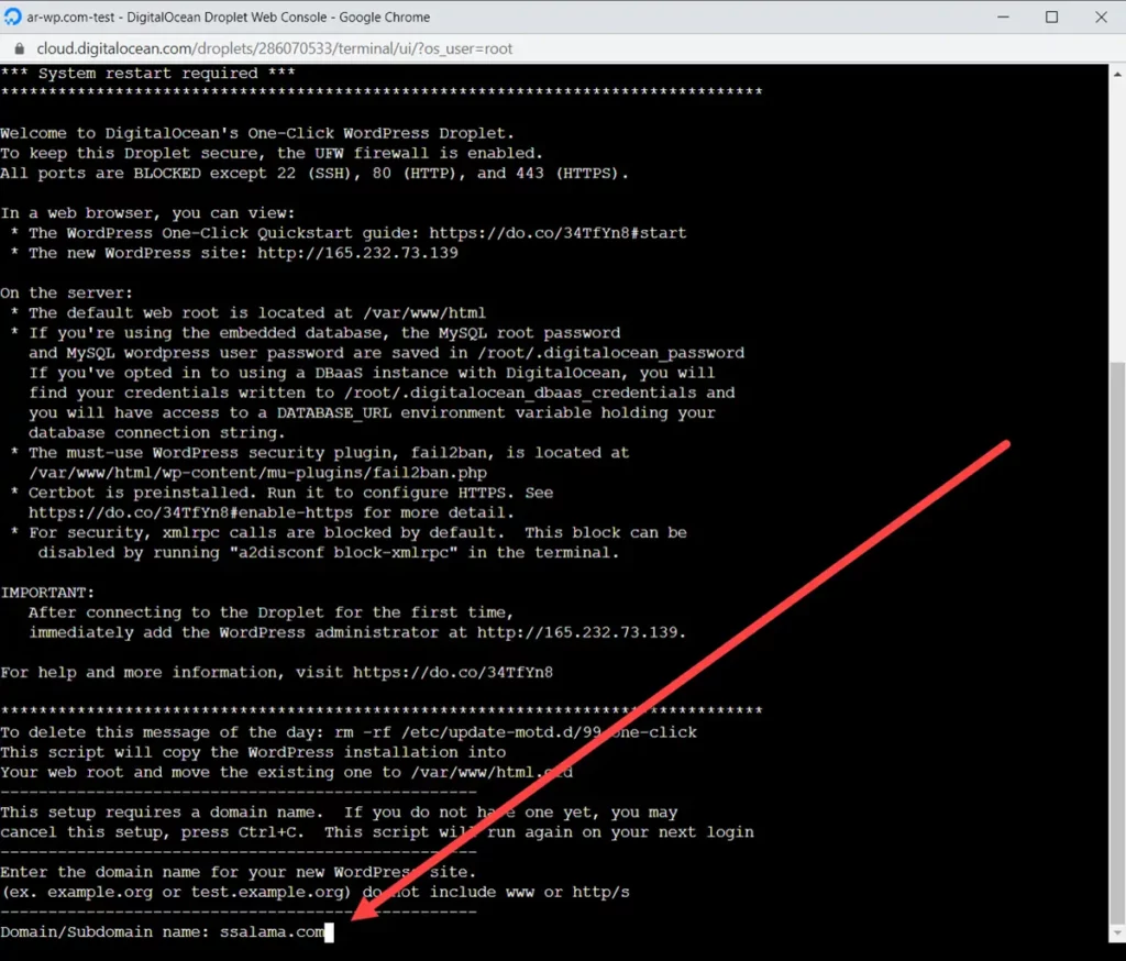 - تهيئة إعدادات الووردبريس عبر ديجتال أوشن كونسول.