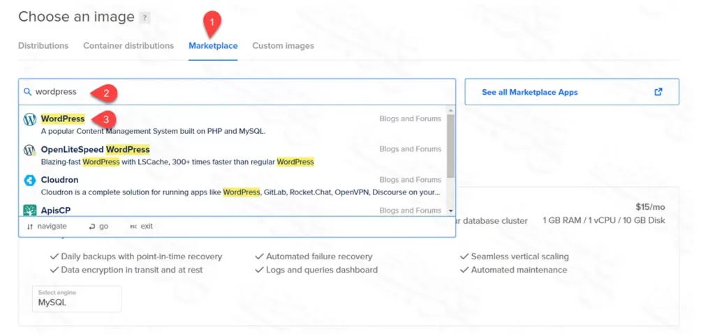 خطوات تنصيب ووردبريس على ديجتال أوشن Digital Ocean تتكون من 3 خطوات، وهي: