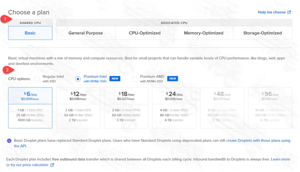 يؤثر اختيار نوع الهارد على سرعة الموقع، أيضًا على الأسعار بشكل طفيف، فمثلا النوع الأول يجعل أول سعر ناحية اليسار بقيمة 5 دولار، بينما النوعين الآخرين يجعلان سعر نفس المواصفات 6 دولار. وكما ترى، فقد فضلت اختيار النوع الثاني وهو Premium Intel with NVMe SSD.