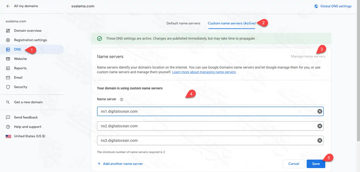 2 - إضافة الـ nameservers في DNS الدومين