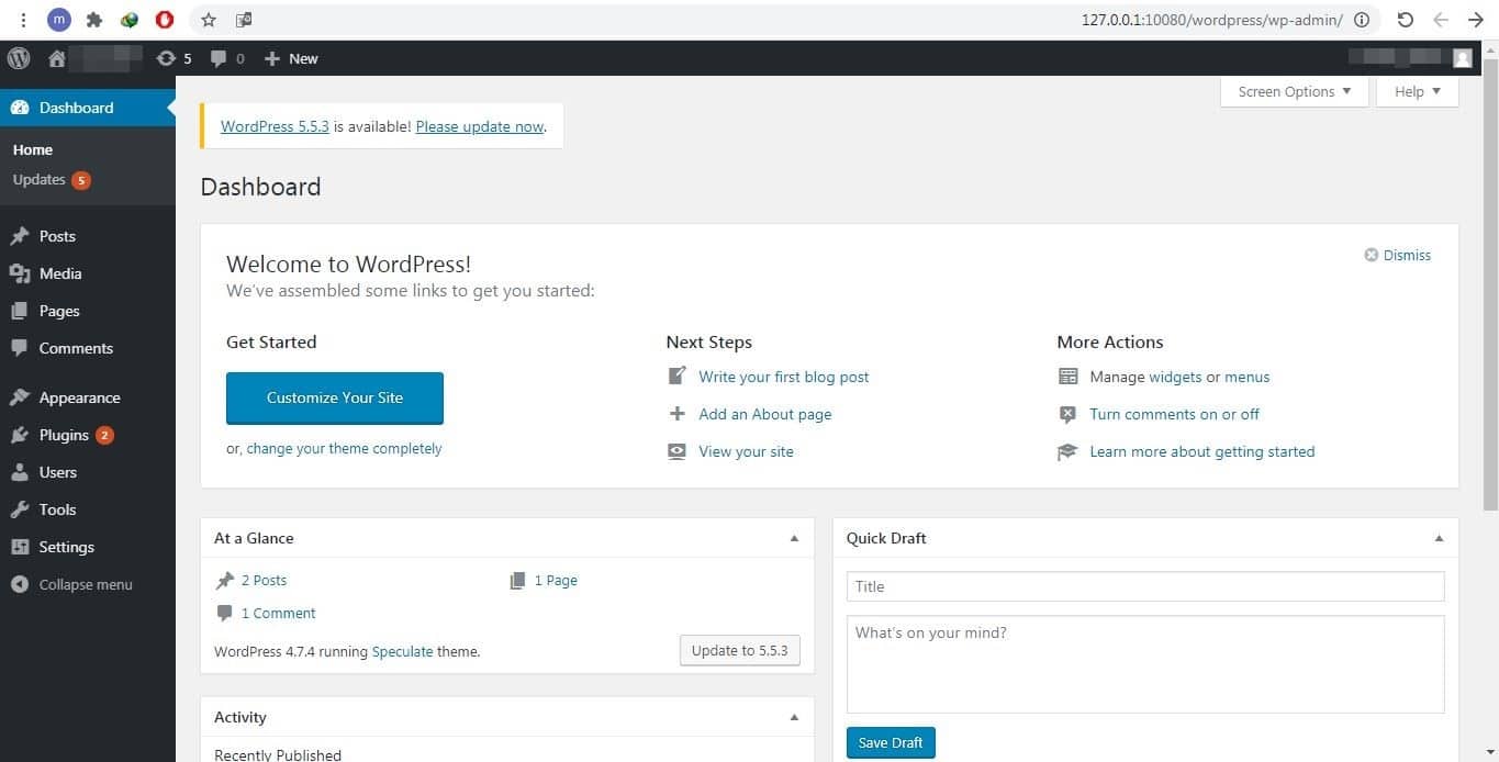 فمثلاً آخر نسخة من خدمة الووردبريس "والتي هي أساس عمل البرنامج" يوم كتابتنا لهذا المقال هي 5.5.3 بينما البرنامج يأتي بدعم لنسخة 4.7.1 التي عفا عليها الزمن منذ وقت طويل.