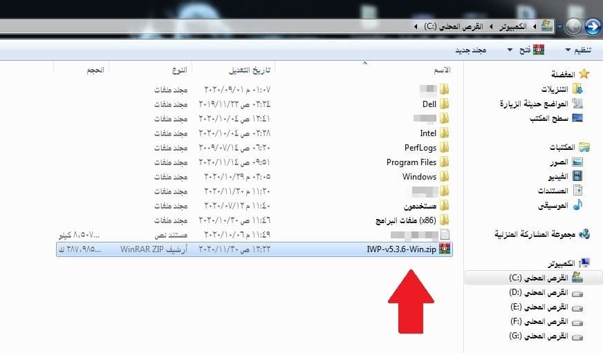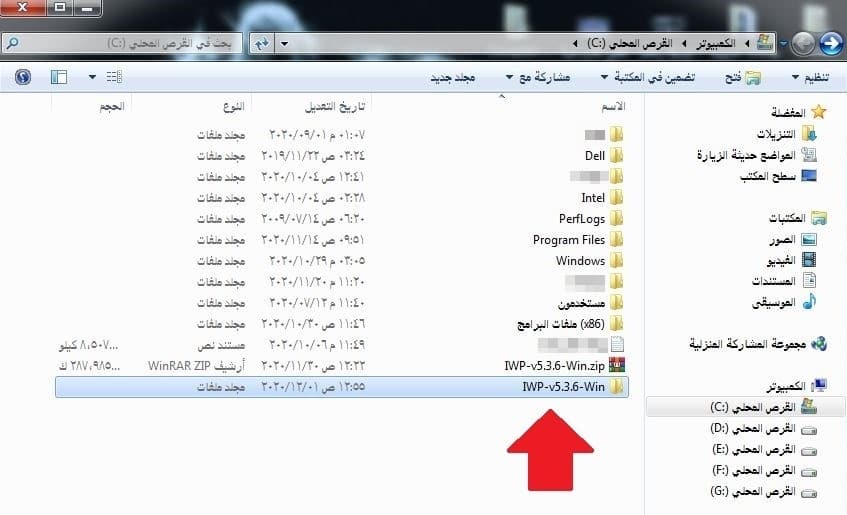 - بعد فك الضغط سينتج لدينا المجلد IWP-v5.3.6-Win، وقد يختلف الاسم باختلاف النسخة المثبتة.