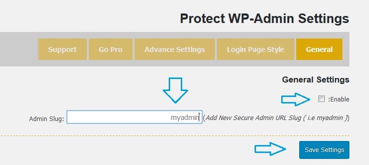 - قم بتفعيل خيار Enable ثم ادخل الاسم الجديد للوحة التحكم حاول أن تختار شيئا فريدًا لا يمكن تخمينه بسهولة.