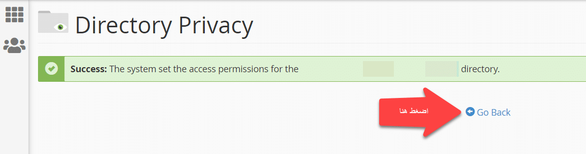 - بمجرد الضغط على حفظ سيؤكد النظام أنك حفظت التغييرات فقم بالضغط على زر العودة Go Back كي تتمكن من إنشاء اسم المستخدم والرقم السري للمجلد.