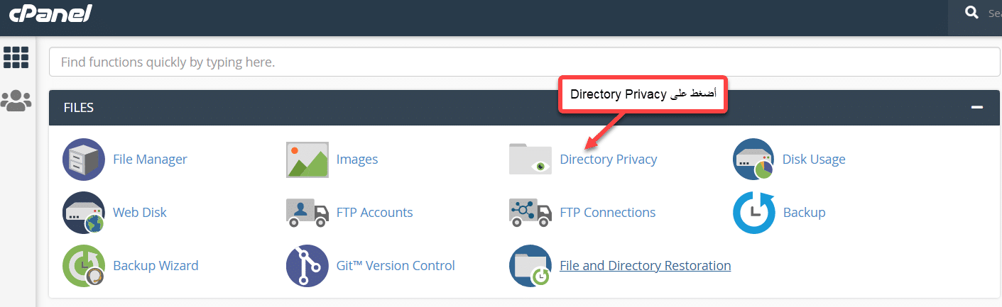 - من قسم الملفات (Files) اضغط على أيقونة حماية المسارات والملفات (Directory Privacy)