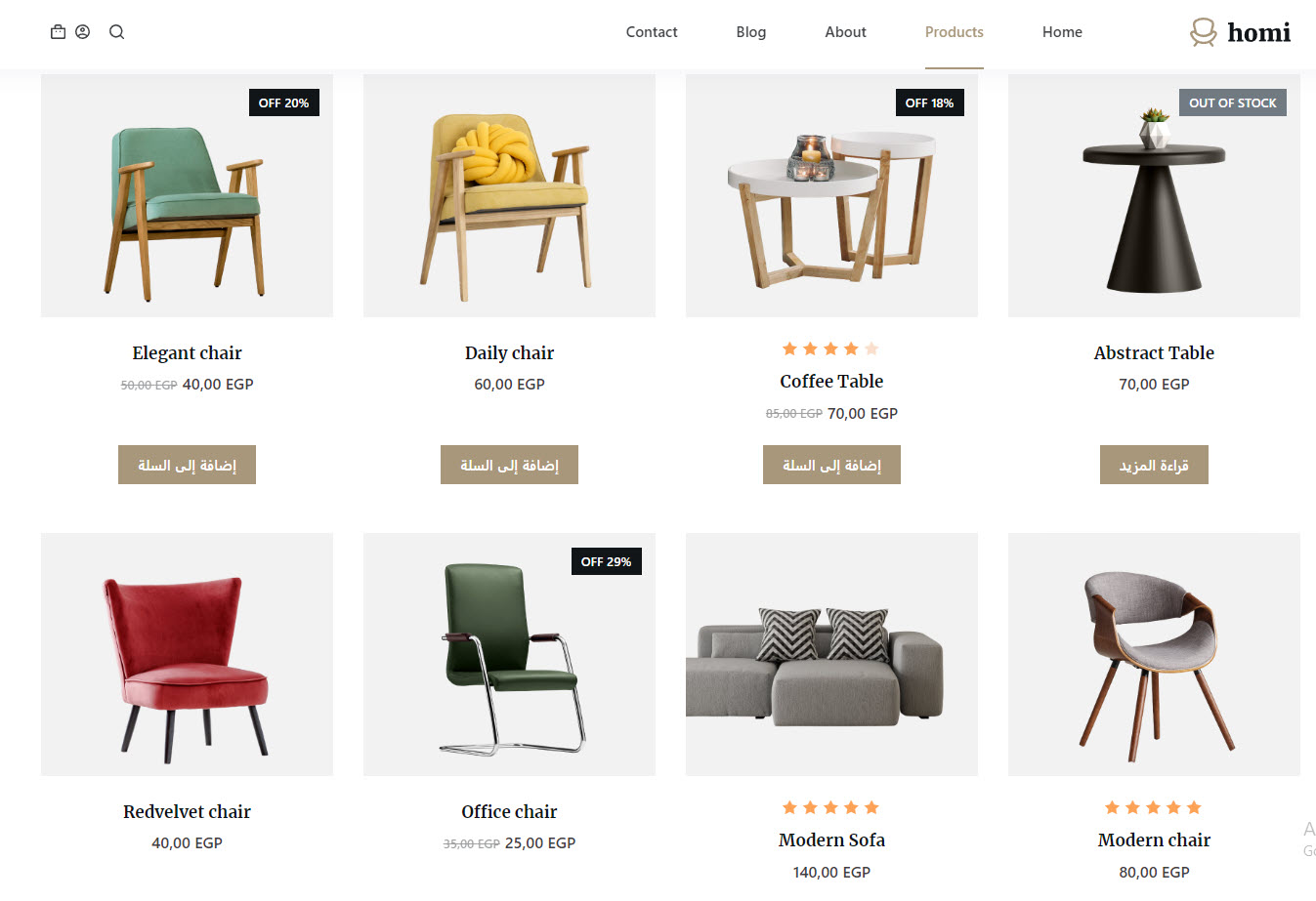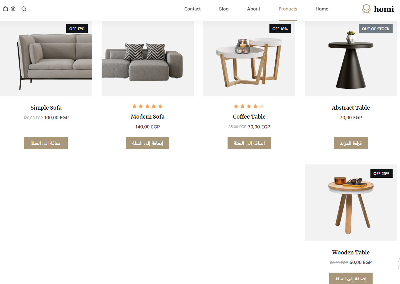 وأخيراً اضغط على حفظ التغييرات، واذهب إلى صفحة المتجر سوف تجد أنه تم إخفاء فئة الكراسي من الصفحة ويعرض فقط فئة الترابيزات والأرائك.