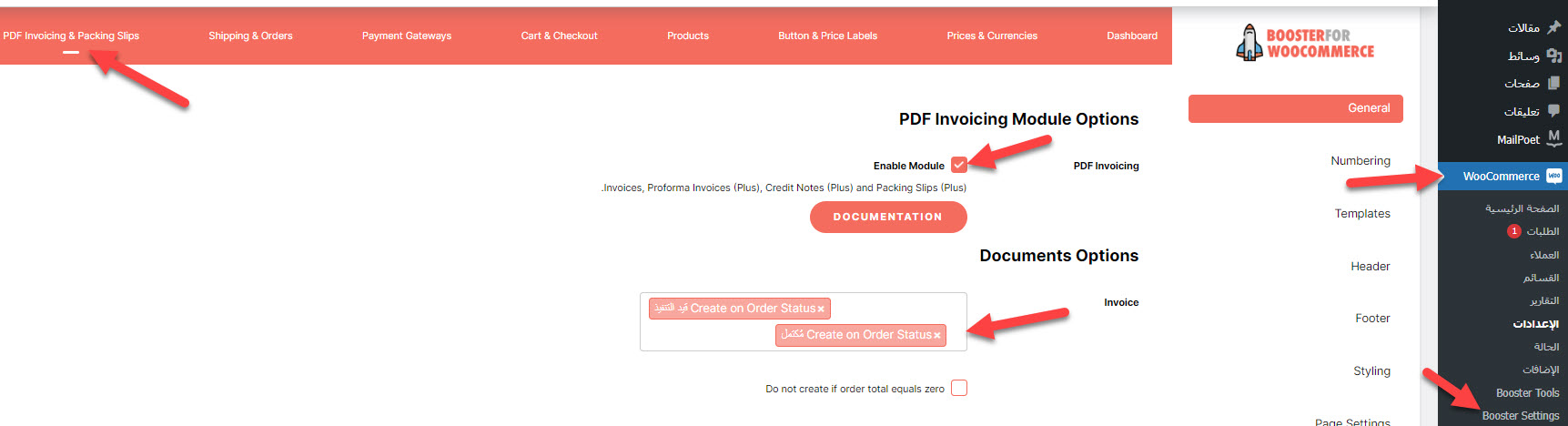 ثم اضغط على تبويب فواتير وقسائم PDF Invoicing & Packing Slips.