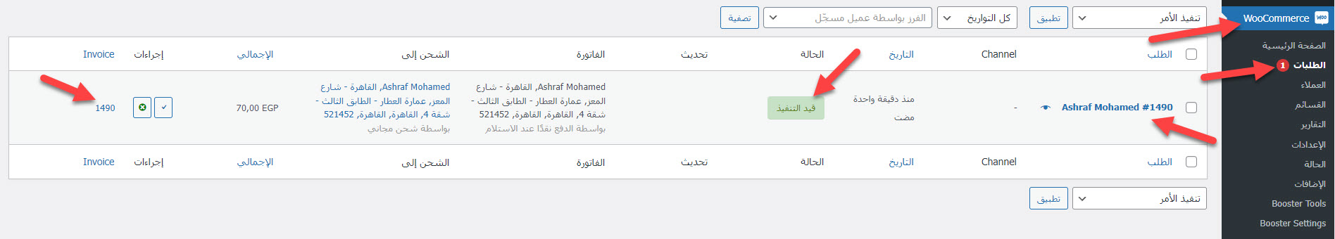 ستجد هناك طلب قيد التنفيذ وأمامه البيانات الخاصة وكذلك رقم الفاتورة وهو 1490.