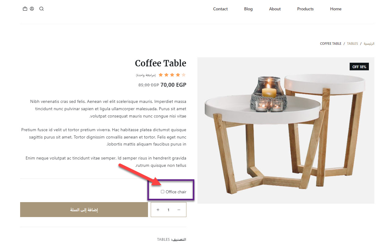 فمثلاً لدينا متجر خاص ببيع أثاث المنزل Home Furniture والعميل قد اختار شراء منتج ما في هذه الحالة ممكن أن نعرض عليه شراء كرسي مكتب Office chair، ولتفعيل هذه الميزة عليك اتباع الخطوات التالية: