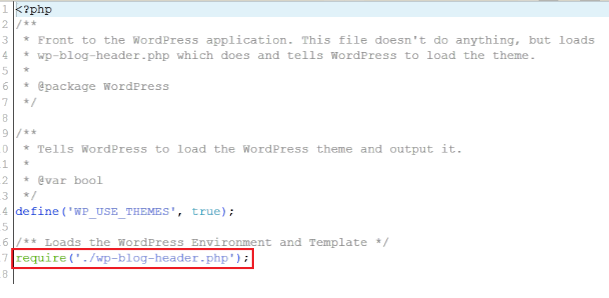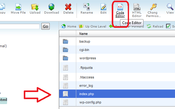 5- انسخ ملف index.php من مجلد wordpress وليس مجلد القالب إلى المجلد الرئيسي لملفات الموقع وغالباً ما يكون public_html أو htdocs أو www أو httpdocs ويمكنك تنزيله بحاسبك ثم رفعه مرة أخرى للمجلد المطلوب أو باستخدام النسخ
