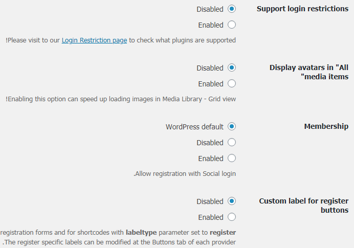 - WordPress Default: الحفاظ على إعدادات الووردبريس الافتراضية في التّسجيل وربط الحسابات.