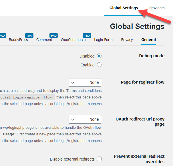 الإعدادات العامة Global Settings لإضافة Nextend social login