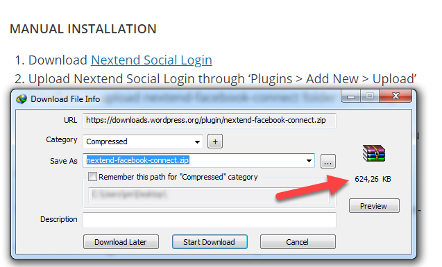 يمكنك الحصول على الإضافة Nextend Social Login وتثبيتها بإحدى طريقتين: إما تلقائيا أو يدويًا عبر تحميل الإضافة لجهازك ورفعها للموقع. هنا سنشرح الطريقة الأسرع من لوحة تحكم ووردبريس مباشرة.
