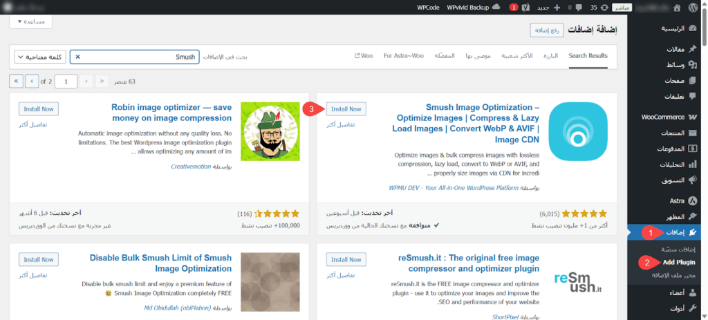 توجد العديد من الإضافات التي يمكن استخدامها من أجل تحسين الصور وضغطها عند رفعها إلى مكتبة الوسائط، ومن الإضافات التي أعتمد عليها إضافة Smush التي تقوم تلقائيًا عند تفعيلها بضغط أي صورة أرفعها إلى الموقع.